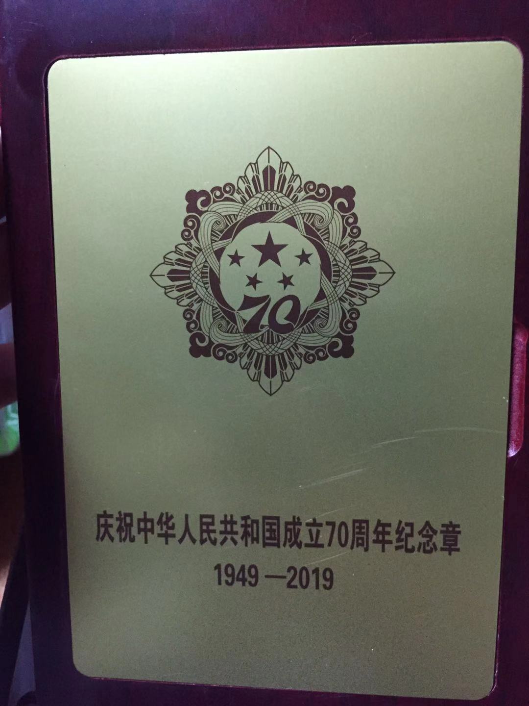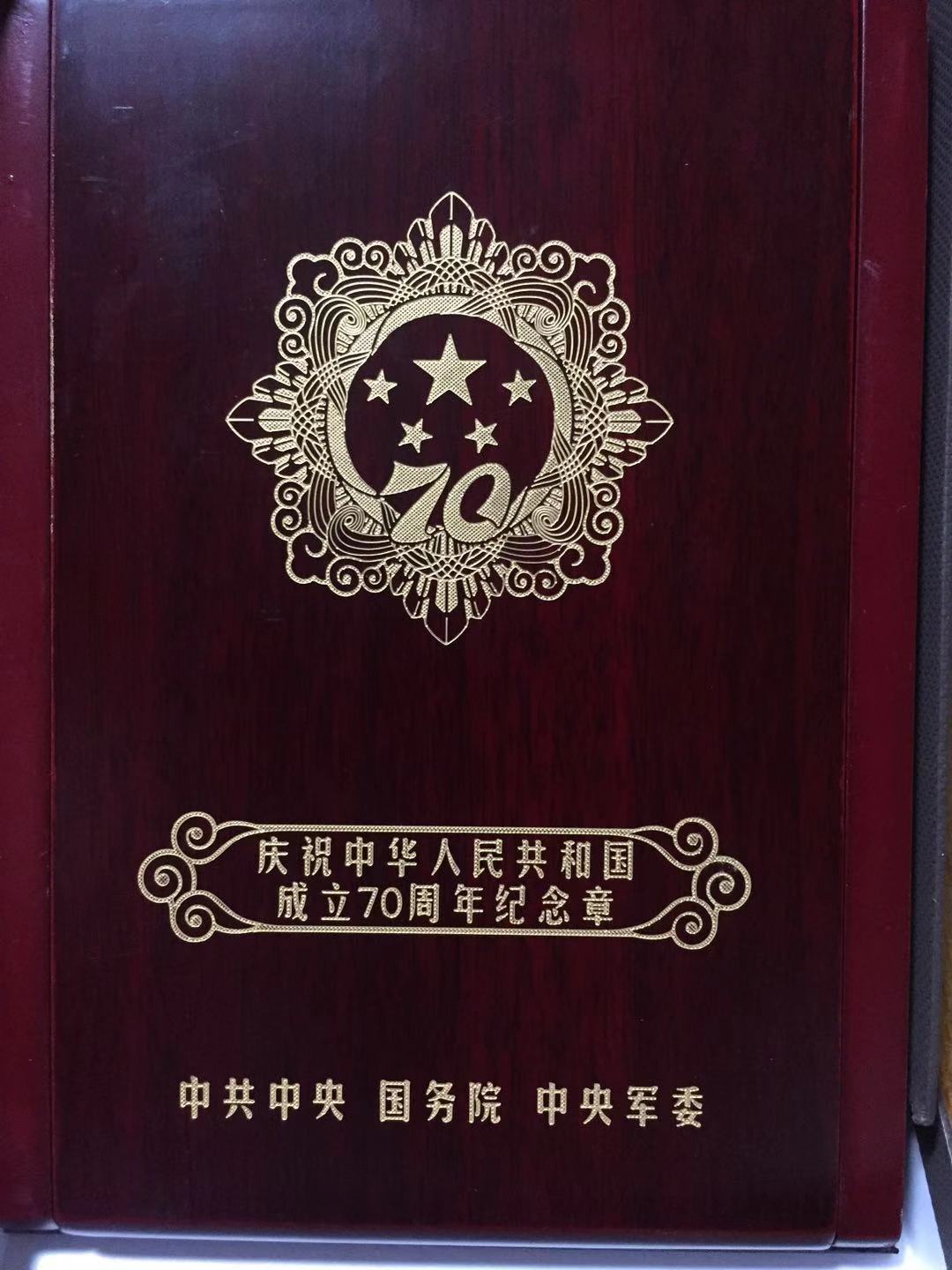 70周年紀念章上,金色的五星熠熠生輝,四顆小星星緊緊圍繞著中間的大星,祥云齊聚,光芒耀目。歷經歲月滄桑的朱風和,是歷史的見證者與參與者,為國家和民族解放事業作出了貢獻。