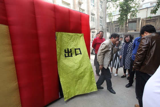 為真實模擬火災現場,加強逃生演練的真實性和針對性,提升大家的參與度,在公司院子進行火災VR模擬逃生演練,和傳統的消防培訓方式相比,VR模擬逃生演練真實度更高,趣味性更強,參與度更高,體驗者不僅能“真實”感受到火災發生時煙的濃度,還能貓腰、扶墻、遮掩口鼻低姿通過,自行尋找“生”的出口,不斷錘煉火場逃生技能。